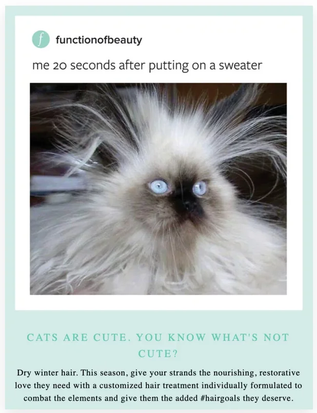 Function of Beauty uses a silly cat meme to promote seasonal hair goals.